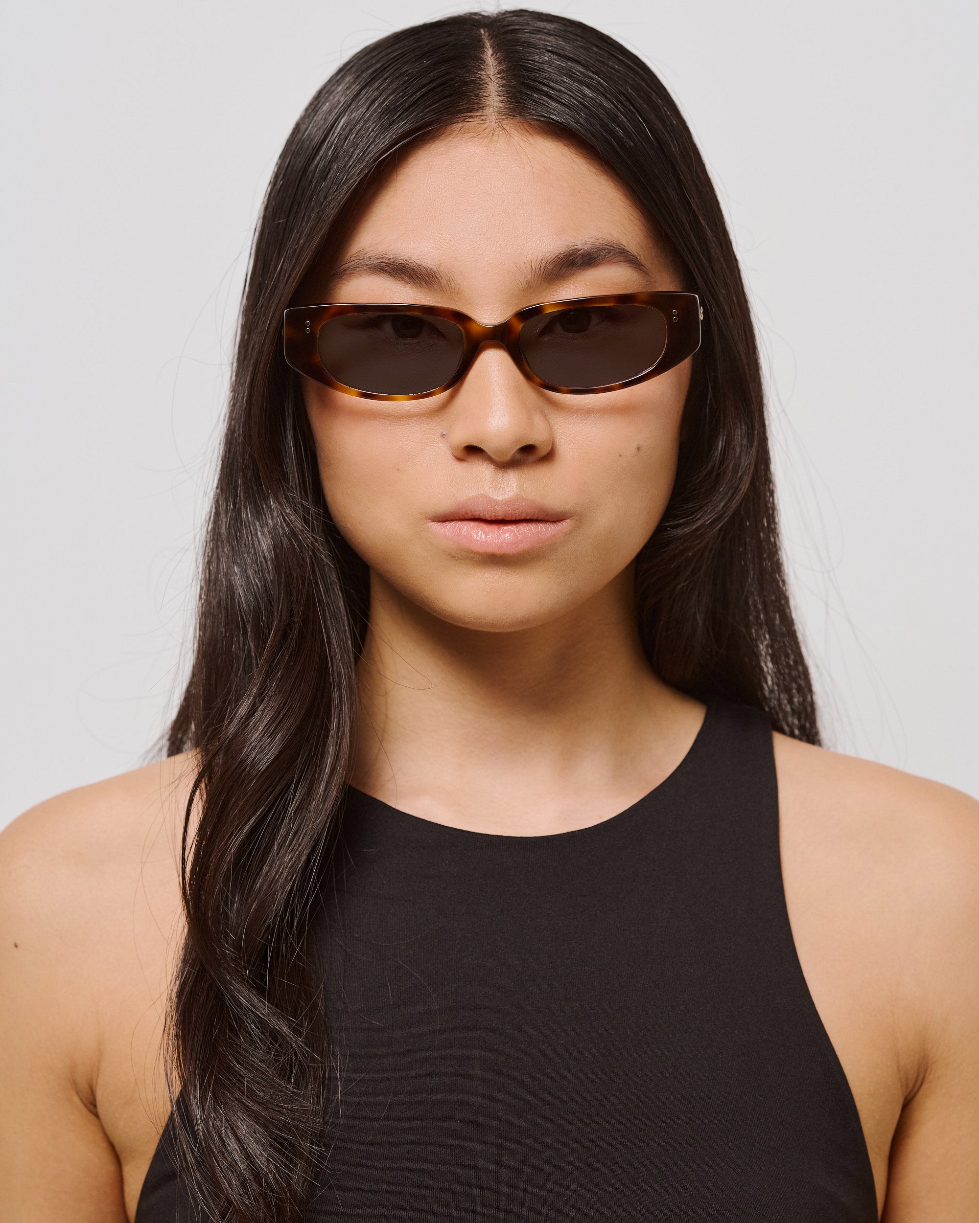 Gianna: For those seeking authenticity and personality in every glance. Our take on the ‘tiny glasses’ trend reveals eyes and brows, following the new modus operandi of the feminine gaze.